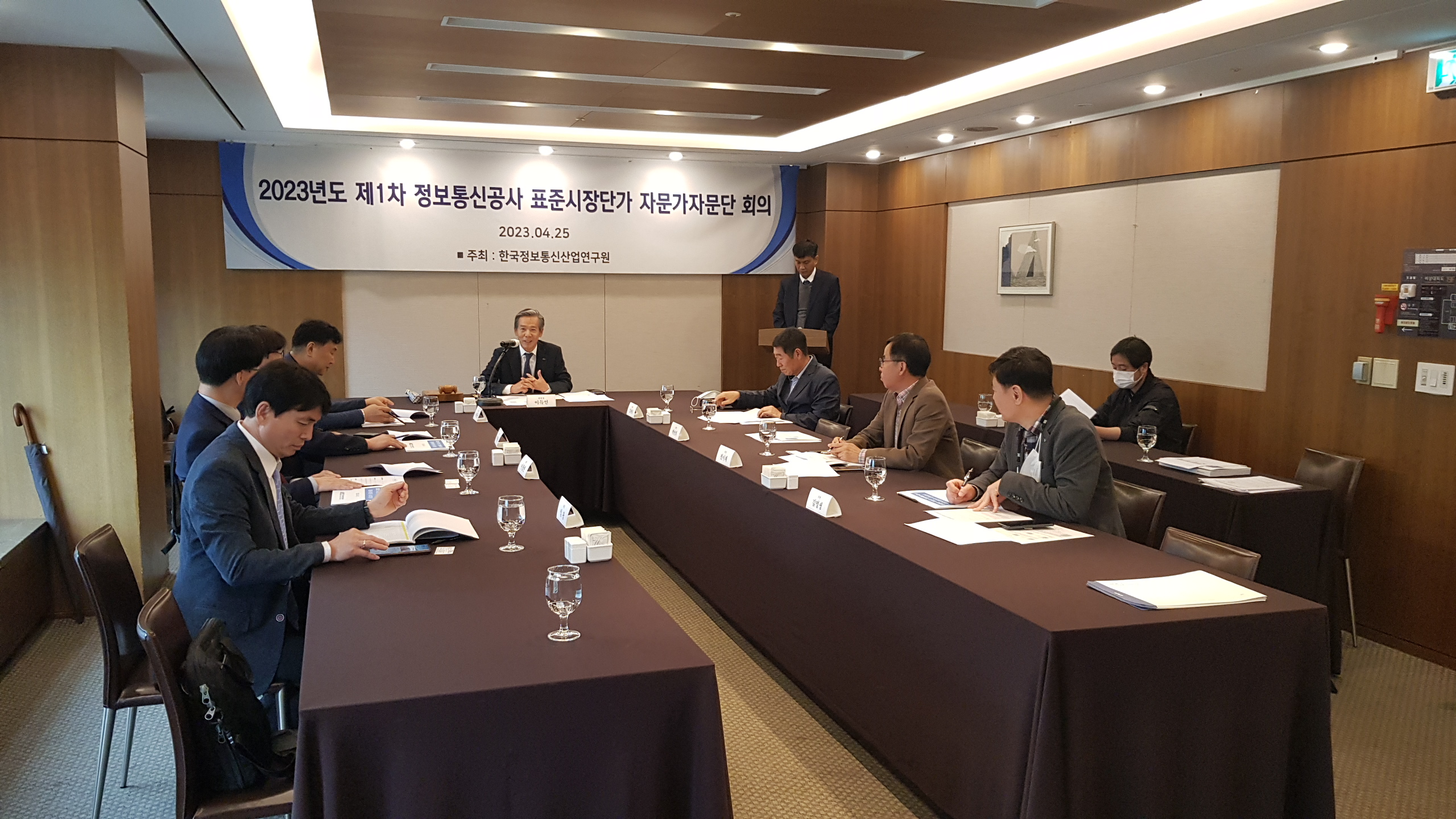 [연구원소식] 2023년도 제1차「정보통신공사 표준시장단가 전문가자문단」회의 개최(2023.4.25)가. 일 시 : 2023. 04. 25(화), 11:00 ~ 13:00 나. 장 소 : 한국프레스센터(서울시청역 인근), 19층 국화실 다. 참 석 : 재적위원 15명중 8명 참석 라. 회의 주요내용 o ‘23년도 하반기 표준시장단가 검토·심의 o 심의의안 의결(원안대로 의결) 등