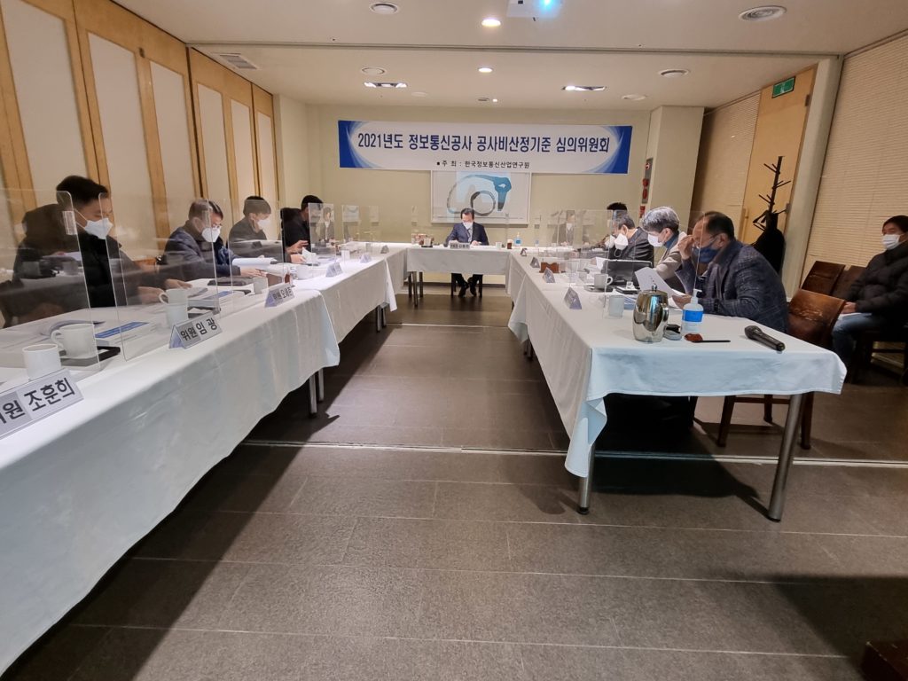 [연구원소식] 2021년도 제3차 정보통신공사 공사비산정기준 심의위원회 회의 개최(2021. 12. 13.)가. 일 자 : 2021. 12. 13(월) 나. 장 소 : 컨퍼런스하우스 달개비 다. 참 석 : 심의위원회 위원 11명 참석 라. 회의 주요내용 o 2022년도 상반기 표준시장단가 심의 o 전차회의록 확인 및 주요 업무보고 o 기타토의 등 ※ 의결사항 o 2022년도 상반기 정보통신공사 표준시장단가 심의(안)