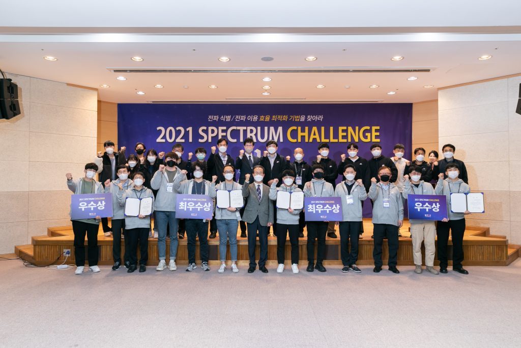 [연구원소식] 2021년도 제 3회 스펙트럼 챌린지 대회 개최결과(2021.11.11)가. 일시 : 2021. 11. 11(목) 10:00~17:00 나. 장소 : 한국전자통신연구원 융합기술연구생산센터 다. 주최 : 한국전자통신연구원 주관 : 한국정보통신산업연구원 후원 : 과학기술정보통신부, 정보통신기획평가원, 한국전자파학회 CR/SDR 연구회, 한국통신학회 주파수공유기술 연구회, Mathworks 등 라. 대회목적 – 국내 전