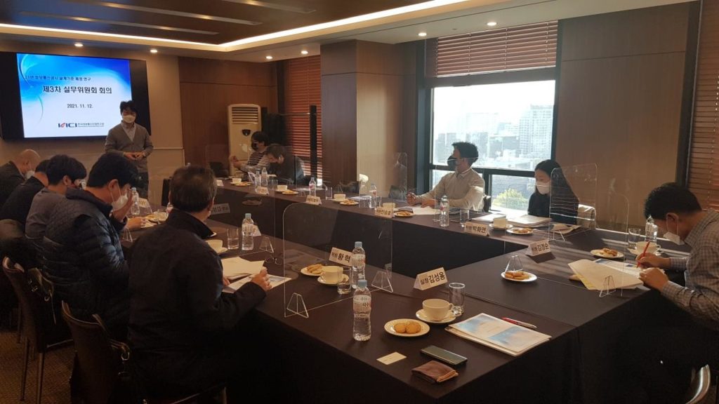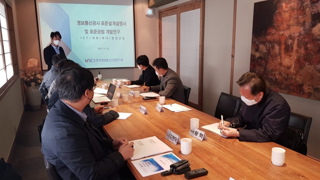 [연구원소식] 「2021년 제3차 표준설계설명서·공법 T/F실무 회의」개최(2021.11.12)가. 일 시 : 2021. 11. 12.(금) 11:00 ~ 13:00 나. 장 소 : 시청역 컨퍼런스하우스달개비 다. 회의 주요내용 1) 2021년 정보통신공사 표준설계설명서·공법 개발연구 추진 현황 보고 2) ICT+의료/복지/환경통신산업 표준설계설명서 및 공법 개발연구 토의