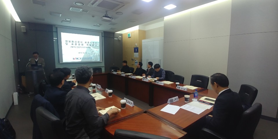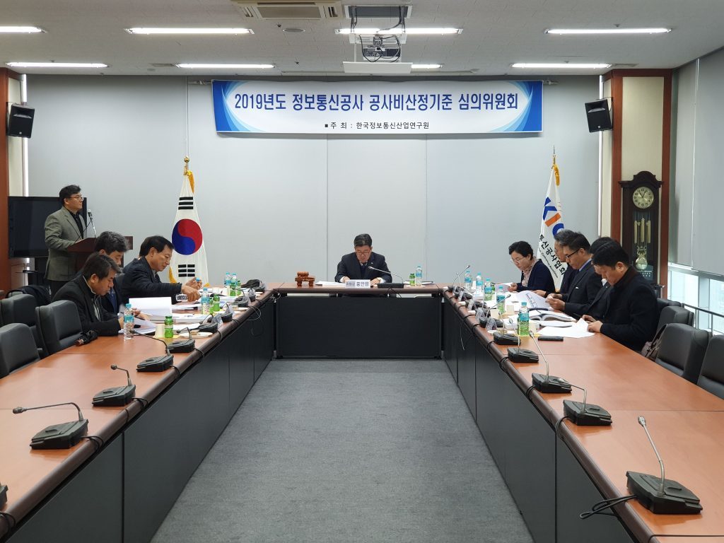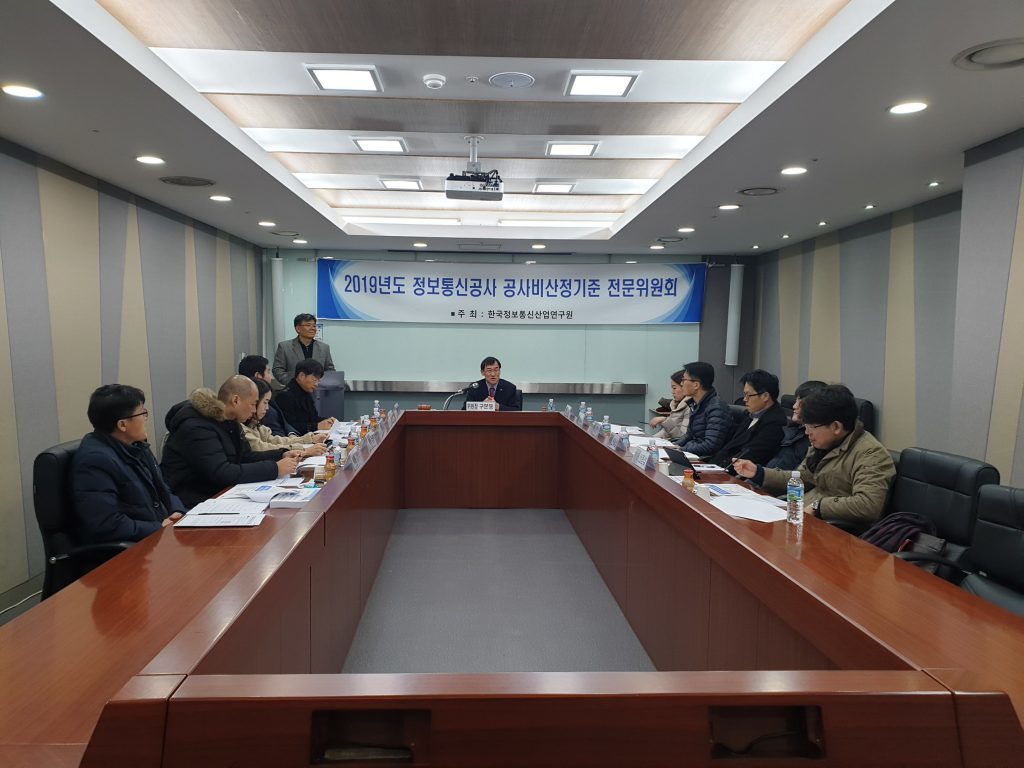 [연구원소식] 2019년도 제3차 정보통신공사 공사비산정기준 전문위원회 회의 개최가. 일 자 : 2019. 12. 6(금) 나. 장 소 : 용산역 회의실 다. 참 석 : 공사비산정기준 전문위원회 위원 11명 참석 라. 회의 주요내용 o 2020년도 상반기 표준시장단가 심의 o 전차회의록 확인 및 주요업무보고 o 기타토의 등 ※ 의결사항 o 2020년도 상반기 정보통신공사 표준시장단가 심의(안)