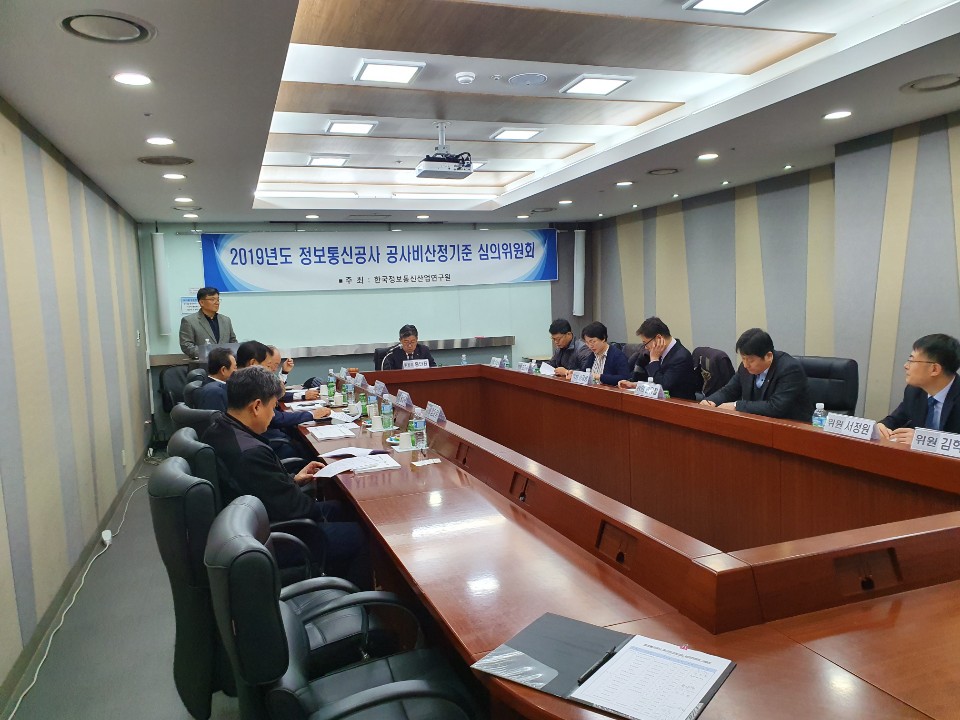 [연구원소식] 2019년도 제2차 정보통신공사 공사비산정기준 심의위원회 회의 개최가. 일 자 : 2019. 11. 29(금) 나. 장 소 : 용산역 itx 특실 회의실 다. 참 석 : 공사비산정기준 심의위원회 위원 12명 참석 라. 회의 주요내용 o 2019년도 정보통신공사 표준품셈 제·개정(안) 심의·확정 o 전차회의록 확인 및 주요업무보고 o 기타토의 등 ※ 의결사항 o 2019년도 정보통신공사 표준품셈 제·개정(안) 총 521