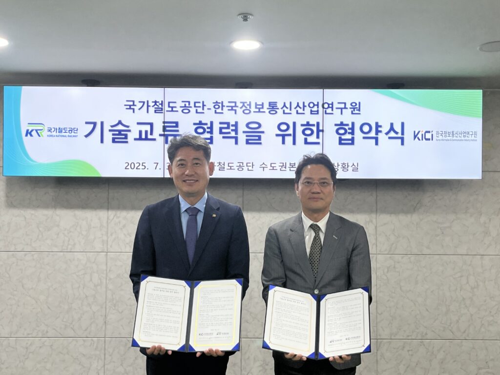 [연구원소식] 한국정보통신산업연구원과 국가철도공단간의 기술 교류 협력을 위한 업무협약식(25.07.03)가. 일 시 : 2025. 07. 03(목) 14:00 ~ 15:00 나. 장 소 : 국가철도공단 수도권본부 상황실 다. 참석 인원 – 한국정보통신산업연구원 백운일 원장 외 4명, 국가철도공단 김윤양 SE본부장 외 4명 라. 주요 내용 – 철도부문 BIM라이브러리 상호 자료교환 및 BIM라이브러리 개발 협력 – 정보통신분야 BIM 생태계 조성을 위한