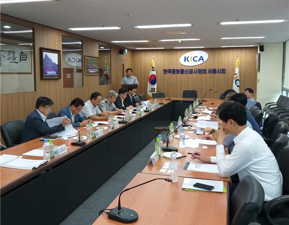 [연구원소식] 정보통신공사 부실시공의 벌점제 도입에 관한 연구 제1차 TF회의 개최가. 일자 : 2019. 8. 29.(목) 나. 장소 : 한국정보통신공사협회 5층 회의실 다. 참석 : 15명(설계업계 3명, 시공업계 3명, 감리업계 4명, 발주기관 3명, 연구원 2명) 라. 주요 내용 o 주요 연구목표 및 TF회의 운영계획 설명 o 타 분야 관련 제도 도입 및 운영 현황 소개 o 정보통신분야 부실시공 벌점제 도입에 관한 의견