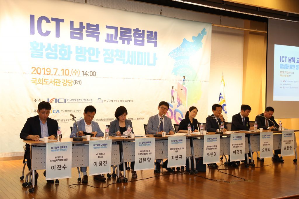 [연구원소식] "ICT 남북 교류협력 활성화 방안 정책세미나" 개최■ 일 시 : 2019. 7. 10. (수), 14:00 ~ 17:00 ■ 장 소 : 국회도서관 강당 ■ 참 석 자 : 노웅래 국회의원, 김성수 국회의원, 이정구 정보통신산업연구원장, 정상호 정보통신공사협회 중앙회장, 최현규 통신과학기술연구협의회 회장 등 204명 참석 ■ 주요내용 o 남한의 발전된 ICT 인프라와 기술을 활용한 다양한 남북 경제협