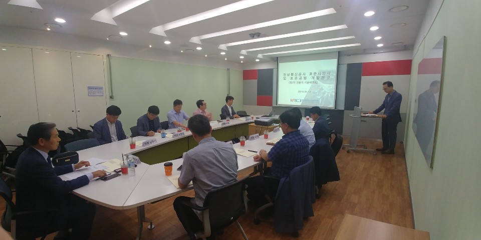 [연구원소식] 「2019년 제1차 표준시방서·공법 전문가 자문위원회」 개최가. 일 시 : 2019. 07. 12.(금) 11:00~12:00 나. 장 소 : 서울역 KTX1 회의실 다. 참 석 자 : 전문가 자문위원 9명, 연구원 3명 라. 회의 주요내용 o 정보통신공사 표준시방서ㆍ공법 개발연구 추진 현황 소개 및 보고 o 표준시방서·공법연구 결과 검토 및 보완사항 의견수렴 o 기타토의