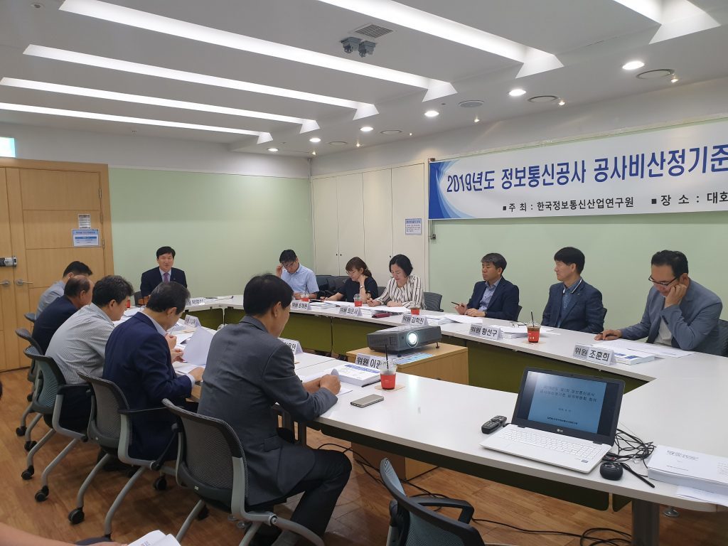 [연구원소식] 2019년도 제1차 정보통신공사 공사비산정기준 전문위원회 회의 개최가. 일 자 : 2019. 6. 5(수) 나. 장 소 : 서울역 회의실 다. 참 석 : 공사비산정기준 전문위원회 위원 11명 참석 라. 회의 주요내용 o 2019년도 하반기 표준시장단가 심의 o 전차회의록 확인 및 주요업무보고 o 기타토의 등 ※ 의결사항 o 2019년도 하반기 정보통신공사 표준시장단가 심의(안)