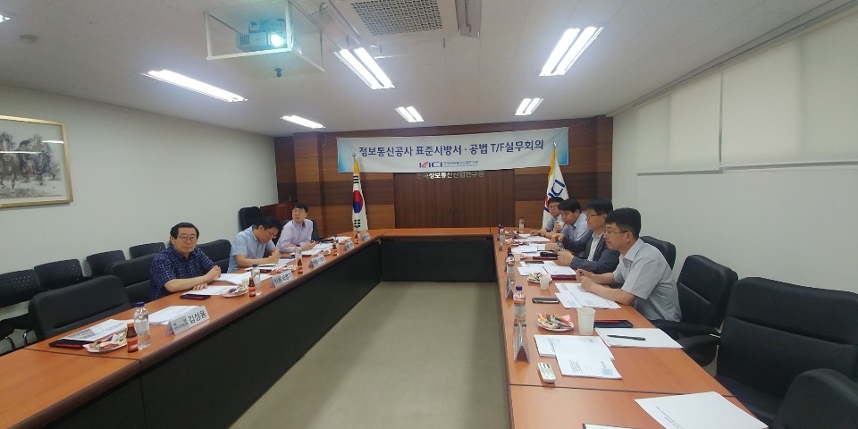 [연구원소식] 「2019년도 제2차 표준시방서·공법 T/F실무 회의 」개최가. 일 시 : 2019.06.27.(목) 10:30 나. 장 소 : 한국정보통신산업연구원 1층 회의실 다. T/F 위원 : 8명(붙임1 참조) 라. 주요 안건 1) 정보통신공사 표준시방서·공법 개발연구 추진 현황 보고 2) 항공·항행통신설비 표준시방서 및 공법 개발연구 검토보고서 토의 3) 기타토의