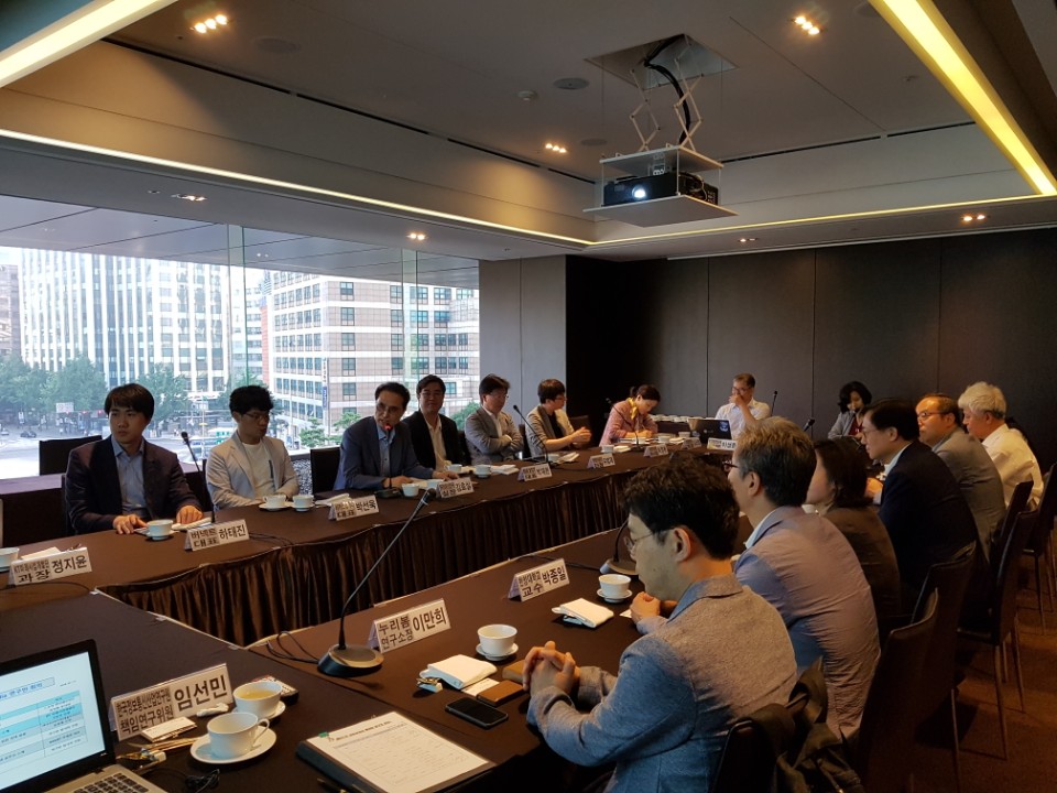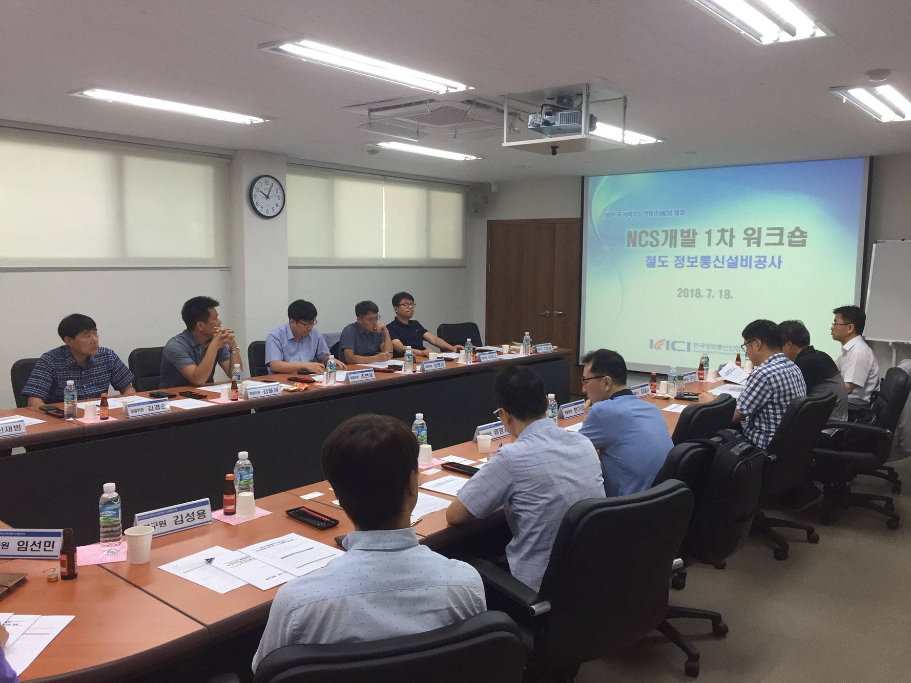[연구원소식] NCS 및 활용패키지 개발용역(철도정보통신설비, 도로·교통정보통신설비)착수보고회 개최가. 일 시 : 2018. 07. 06.(금) 15:00 나. 장 소 : 한국정보통신산업연구원 회의실 다. 참 석 자 : WG 심위위원 8명 및 산업인력관리공단 1명 등 총 15명 라. 회의 주요내용 o 개발일정 보고 및 환경분석 적정성 검토 o 개발진 구성 및 1차 산업체 검층 대상 업체 적정성 심의 o 기타 NCS직무정의, 개발범위, 방향 등 의견