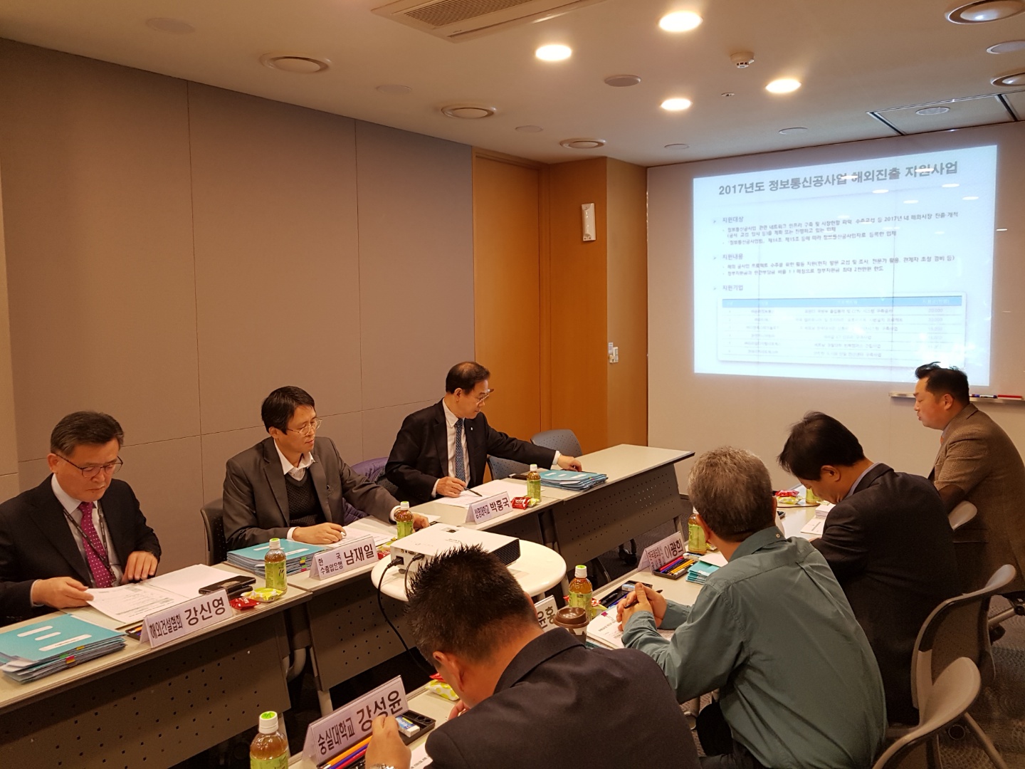 [연구원소식] 2017년도 정보통신공사업 해외진출 지원사업 최종결과보고서 평가회의 개최가. 일 자 : 2017. 11. 30(목) 나. 장 소 : 서울스퀘어 컨퍼런스 회의실 다. 참 석 : 해외진출 지원사업 평가위원 7명 참석 라. 주요내용 o 정보통신공사업 해외진출 지원사업 최종 결과보고서 평가 o 평가결과 종합토의