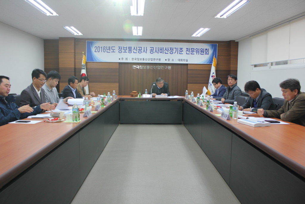 [연구원소식] 2016년도 제3차 정보통신공사 공사비산정기준 전문위원회 개최가. 일 자 : 2016. 12. 2(금) 나. 장 소 : 연구원 1층 대회의실 다. 참 석 : 전문위원회 위원 10명 참석 라. 회의 주요내용 o 2016년 정보통신공사 표준품셈 제개정(안) 심의 o 정보통신공사 표준품셈 공종분류체계 개편(안) 심의 o 전차회의록 확인 및 주요업무보고 o 기타토의 등