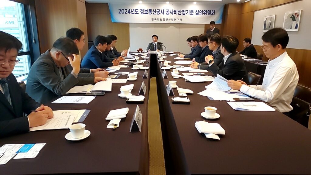 [연구원소식] 2024년도 제3차 「정보통신공사 공사비산정기준 전문위원회」 회의 개최(24.11.26.)가. 일 시 : 2024. 11. 26.(화), 10:30 ~ 13:15 나. 장 소 : 한국프레스센터, 19층 회의실 다. 참 석 : 정보통신공사 공사비산정기준 전문위원회 위원 10명 라. 주요 내용 o ‘25년도 적용 정보통신공사 표준품셈 제·개정(안) 심의