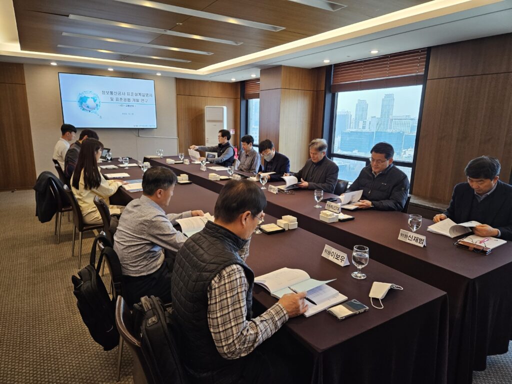 [연구원소식] 2023년도 제4차「정보통신공사 표준설계설명서·공법 실무위원회」개최(2023.11.29)가. 일 시 : 2023. 11. 29(수) 11:00 ~ 13:00 나. 장 소 : 시청역 프레스센터 프레스클럽 19층(석류실) 다. 주요내용 – ’23년 정보통신공사 표준설계설명서·공법 수정 내용 보고 – ’23년 정보통신공사 표준설계설명서·공법 보완 사항 논의 – 기타토의