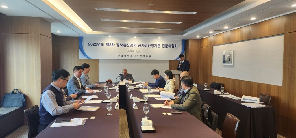 [연구원소식] 2023년도 제3차「정보통신공사 공사비산정기준 전문위원회」개최(23.11.9)일 자 : 2023. 11. 09(목) 장 소 : 한국프레스센터(서울시청역 인근), 19층 국화실 참 석 : 재적위원 15명중 9명 참석 주요 내용 o ‘24년도 상반기 표준시장단가 검토·심의 o 심의의안 의결(일부 수정하여 의결) 등