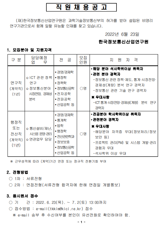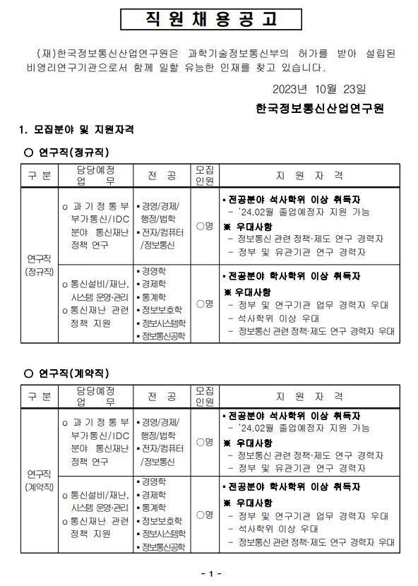 [채용공고] 마감 [마감] 2024년 상반기 연구원(정규직, 계약직) 모집 공고 안내(2024.4.7까지) -
