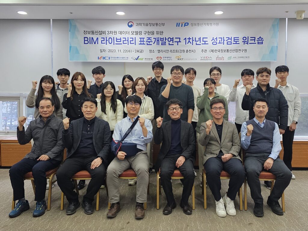 [연구원소식] 2023년도 「정보통신설비 3차원 데이터 모델링 구현을 위한 BIM라이브러리 표준개발」 하반기 워크숍 개최(11.22~11.24)가. 일 시 : 2023. 11. 22(수) ~2023. 11. 24(금) 나. 장 소 : 엘리시안 강촌(강원 춘천시) ...