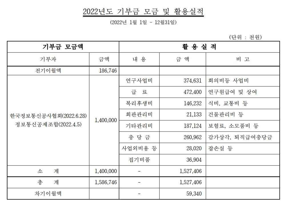 2022년도 기부금 모금 및 활용실적