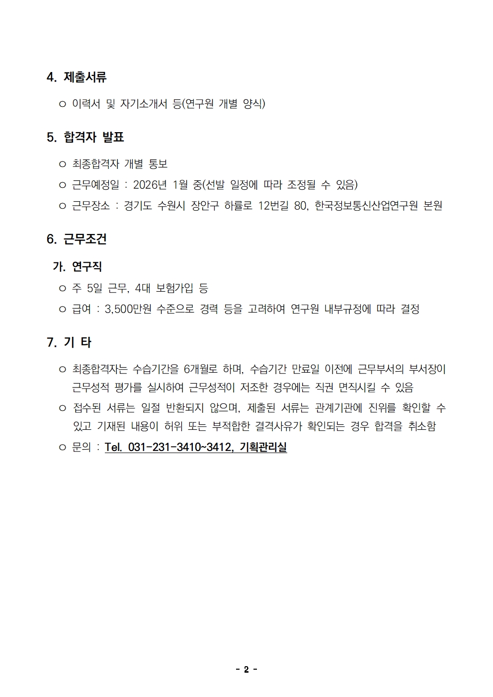 2025년 하반기 연구원(계약직) 모집 공고 안내(2026.1.2까지)